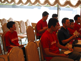 各チームに分かれてのミーティングがおこなわれました。みなさん、朝早くからお疲れ様!